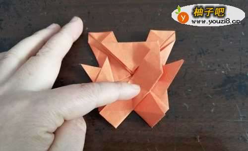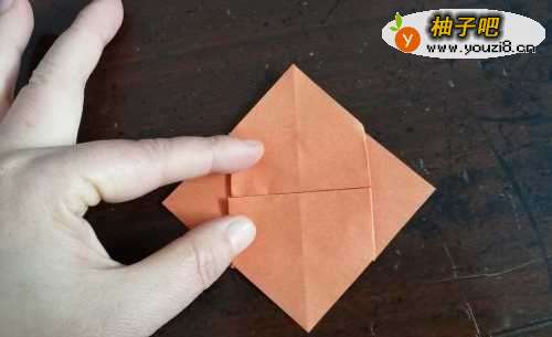 6折好后,把中间的角压平,翻到正面,把下边的角上折再向回折,图二是完成图。