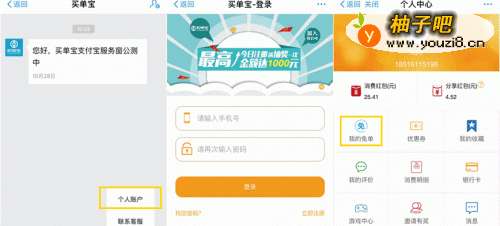 4进入买单宝服务窗,登录个人中心账户,在“我的免单”中查询免单详情。
