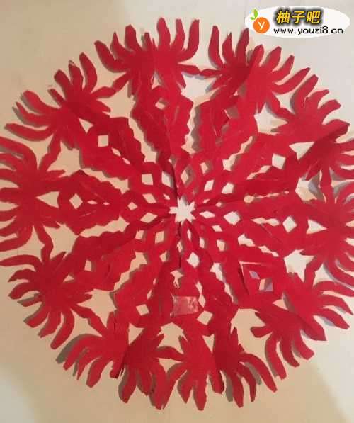 6第六步 画完之后 拿起手工剪刀开始裁剪 剪完之后 慢慢取开铺平就完成了