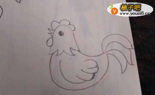 4还有公鸡漂亮的大尾巴也给描绘出来,如图。