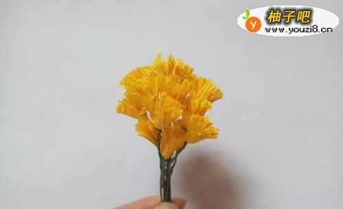 4固定在花杆上,折一下铁丝,在纸的中间拧紧。