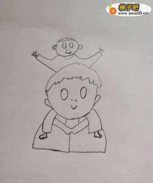 5如图,画出爸爸脖子上的小男生,双手臂自然张开,很开心的样子。