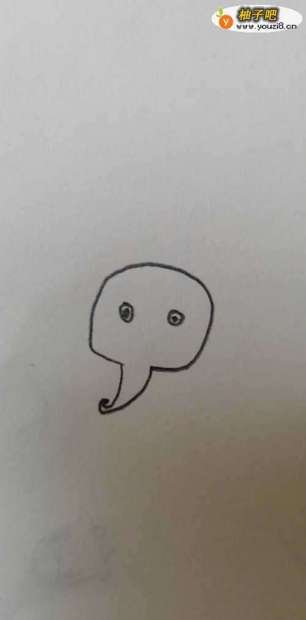 3画上大象圆圆的眼睛。两只眼睛要一样。