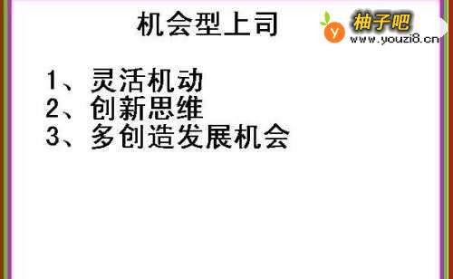 3第三,对于灵活多变善于抓住各种机会去发展公司的上司,那么需要思维多变,学会创新,多想一些推动公司发展的点子,为公司谋取更多的利益,这时会得到上司的重视。