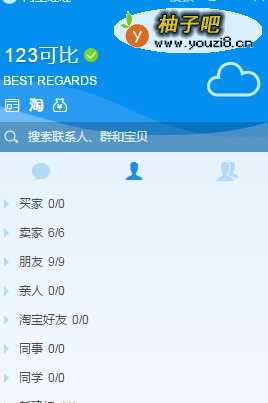 3点击后,显示自己的好友联系人,已经进行默认的分组,如下图,分为卖家、买家等组别。