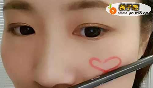 8首先,腮红要打对位置,宁高勿低!切记!有个很简单的思路,拿支笔,看一下鼻子和耳朵的连接线,这里就是腮红的分界线,不能超过这条线哦!