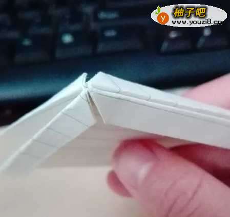 5最后反过来将两侧的尖角塞到中间的小正方形下面,蝴蝶结就完成了。
