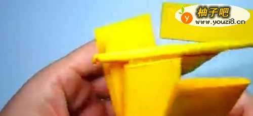 12之后,就能把折纸出来的“枪管”放入这个方块小部件里面了。