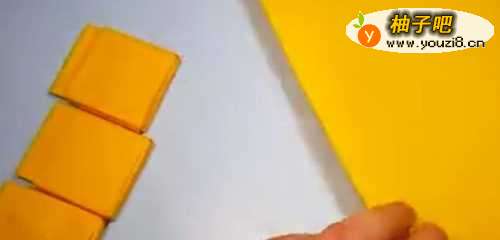 7将上面这三张纸条,都逐一折成小方块的形状,放到一边备用。