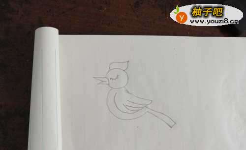 4我们把小鸟的身子和长长的尾巴用线表达出来,如图。