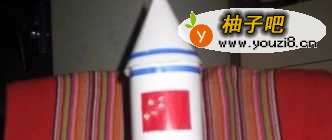 3准备一张白纸,用双面胶粘在瓶子上,当火箭的主体。