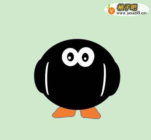 4利用椭圆形绘出企鹅身体上的百白色圆形。