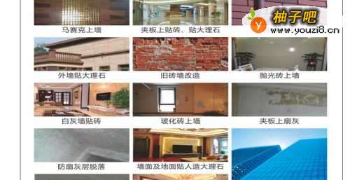施工前可用毛刷或湿抺布清除瓷砖背面的浮灰,油污,脱模剂等影响粘结的杂质