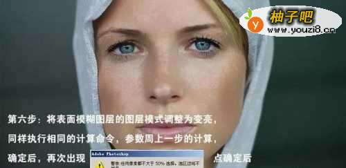 6将表面模糊图层的图层混合模式改为“变亮”,同样运作相同的计算命令,参数同上一步的计算,确定后再次出现下面所示的对话框,点确定。再次创建曲线调整图层,所有参数模式,并确定后运作自动色阶命令;