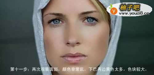 11再次观赏察面板,颜色非常乱,下巴两边黄色太多,色块较大,利用可选颜色对哥哥地方进行单独调整,以达到统一肤色的目的;