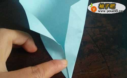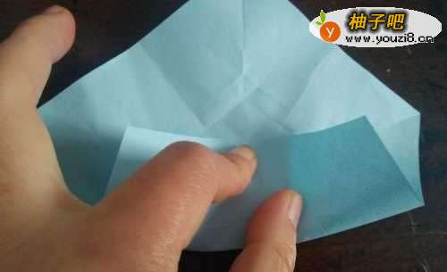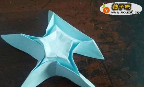 3我们再把每条边向着下边的点对折,折好后就是图二的样子。