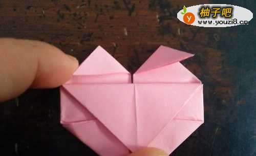 6把上边的尖角向下折一点点,然后也是按照折痕折进里边,如图二的样子。图三是我折好后的完成图。