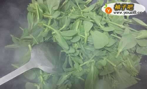 6菜头炒好后就放盐,鸡精,如图。