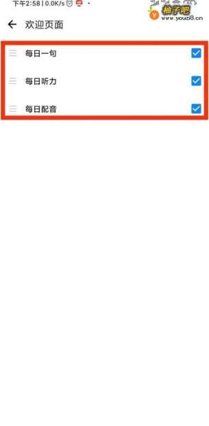 4选择欢迎页面内容“每日一句”、“每日听力”、“每日配音”。
