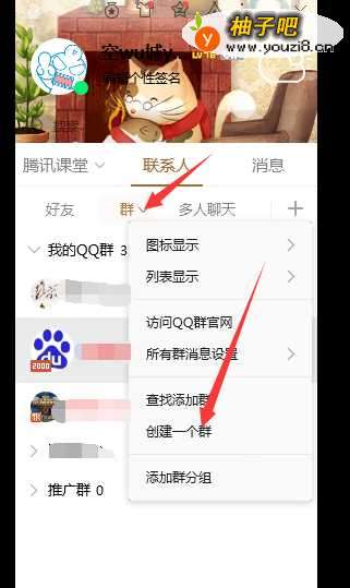 4然后点联系人看到下方有个群在点击下会看到创建一个群,这个必须得创建!