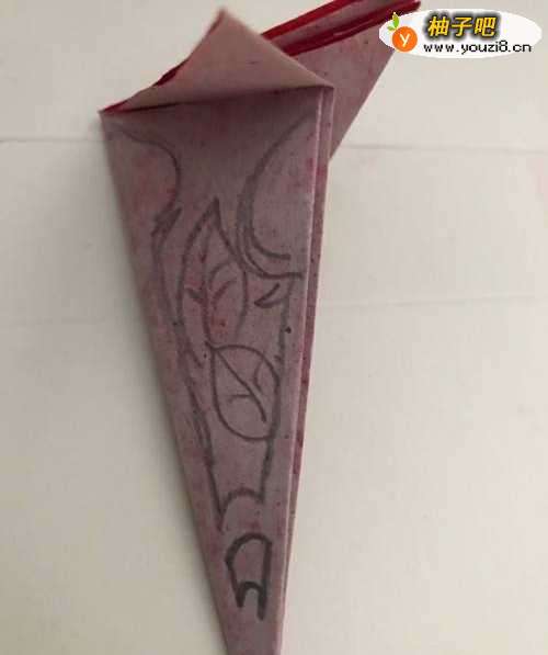 5第五步 全部都画完之后 再用绘图铅笔涂实一下每一个需要剪去的地方 然后拿起手工剪刀剪去上头空白的三角部分