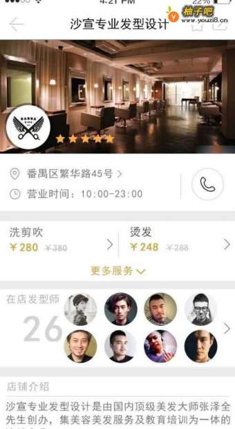 4在商家主页,你能看到你想要去的那家发型屋的所有相关信息,包括发型师、提供的美发套餐和价格等等,以供你选择自己喜欢的而有觉得价格合理的发型屋!