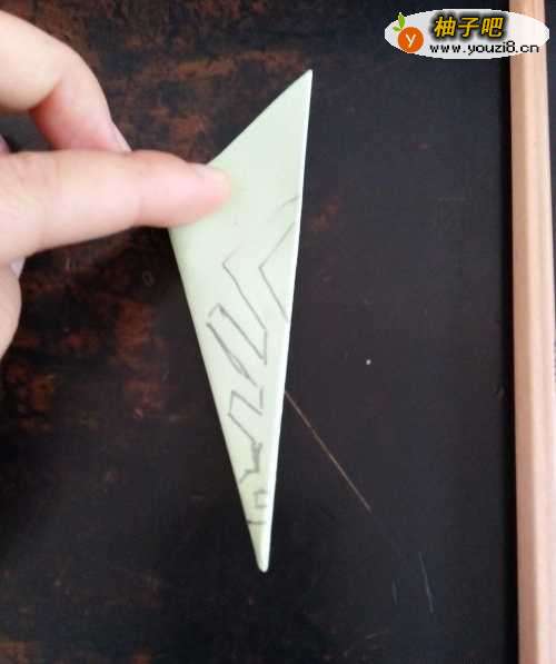 5接下来我们在折好的纸上画上我们要准备剪的图样。
