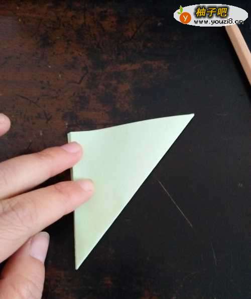 2首先我们先把彩纸中线对折,要把边缘线对齐,方便好继续折。争孝压