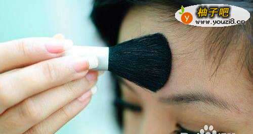 7应用散粉均匀配置粉末刷在脸上。拍打成粉末,然后用纸巾轻按,使多余的脱落刷刷。轻轻刷在整个脸部。配置古铜色粉扑(小)适用于上睑粉。应用到你的额头,脸颊,下巴。