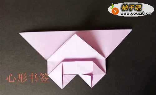 7将每一部分的单层折叠,左边向左折叠,右边向右折叠,使下面也形成一个三角形。在将小三角形尖向上折叠。折好翻转过来压平即可,书签折成功。