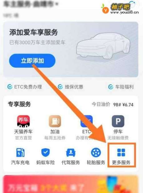 3进入“车主服务”后,在“专享服务”中选择“更多服务”