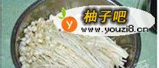 将金针菇洗净,切去菇脚部分,沥干水份备用。