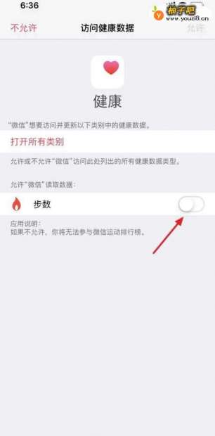 6步数后面的按钮变成绿色按钮后,点击 上面的能够