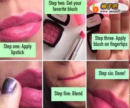55.想要口红变成哑光的感觉很简单,涂一层口红以后,选择你最喜欢的腮红涂在唇上,然后抿一下嘴唇,让唇膏和腮红充分混合就能了