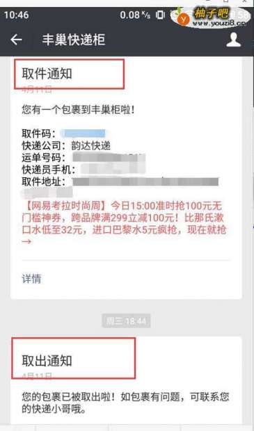 6通常在微信端接收到的快递取件信息如图所示,里面就有你的取件码,以及取件后会通知已经取件了。