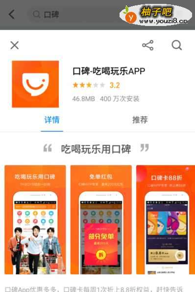 首先需要下载安装口碑客户端,能去应用市场找到相应的下载,如下图所示。