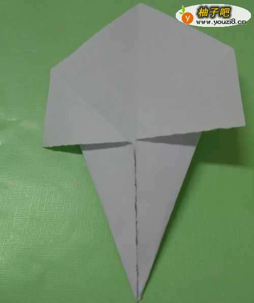 9再将纸上方的角向下折一小段,折成扇面,这样,一把大蒲扇就折好了。