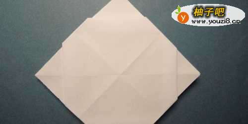 2接着,把正方形折纸四边的三角纸边向中间对折,并压平整,如下图所示。