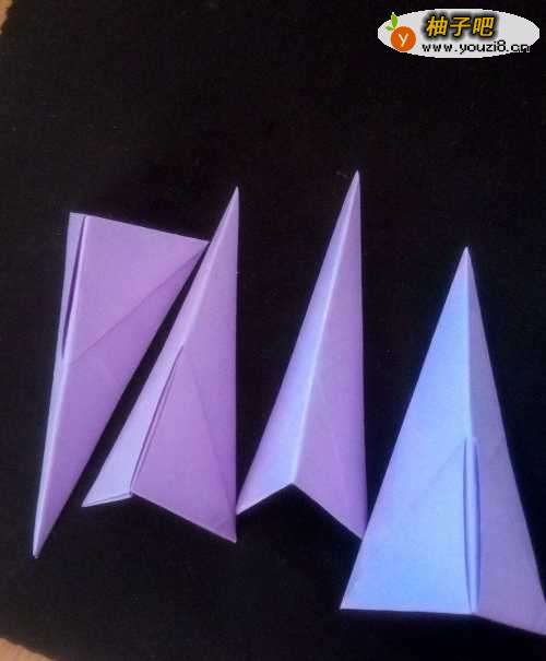 7按照前面的步骤在把另外三张正方形的纸折好,折好后再看下一步