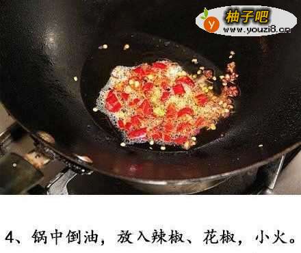 6然后加入辣椒粉,花椒粉,炒香,加入开水,熬一会儿盛出