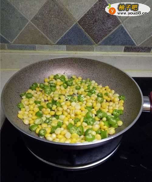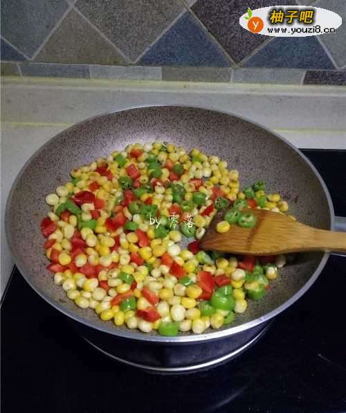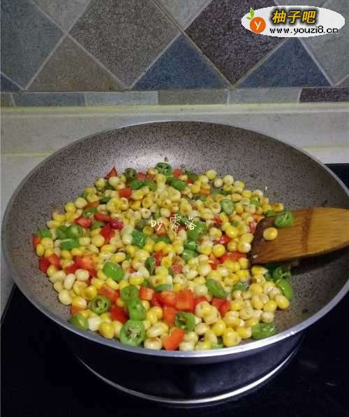 6放入玉米粒翻炒;
