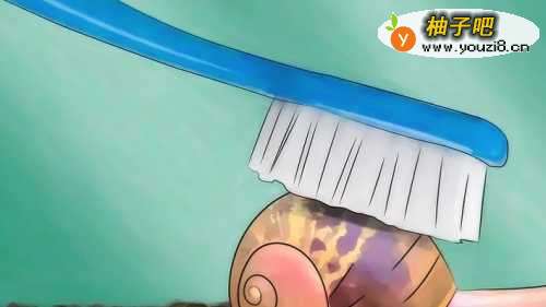 6保持蜗牛的清洁。当你的蜗牛壳脏了之后用牙刷给它做清洁。不要用肥皂,而且刷的要轻,不要损伤蜗牛壳。在壳上浇几滴水也能有效清除粘在上面的泥土。