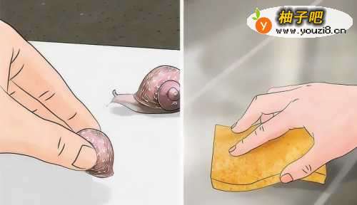 7每月清洁一次水缸,或者啥时候水缸一脏就清洁。用你的手指在蜗牛的头下面把它们哄诱开,放到一个临时容器里的湿巾上。将旧土倒到花园里丢弃,并用潮湿的,带一点肥皂的海绵搓洗水缸的四壁和底部,将上面的蜗牛爬过的痕迹和浮垢擦掉。仔细冲洗水缸,保证无肥皂残留,以免伤害蜗牛。