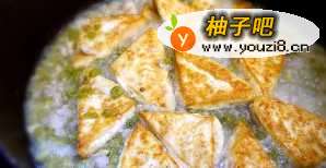 2第一步:豆腐切成你喜欢的形状下锅煎(油比日常炒菜多点)