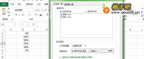 3在对话框中,选择已启用文件,合并选项工作表范围选择【全部非空表】