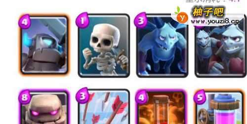 6圣水收集器:石头人在出的时候 很容易被对手直攻另一路,有圣水收集器的话能用3-4费守对面的路,平均圣水超过4的牌组就要配置,可增加容错率和一波进攻的影响力。