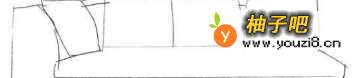 01. 根据沙发的尺寸确认家具在画面中的位置和大小,用铅笔勾勒出沙发家具的大体形状,注意把握好外形特征。
