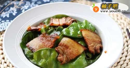 6放入盐翻炒,最后放五花肉翻炒均匀;