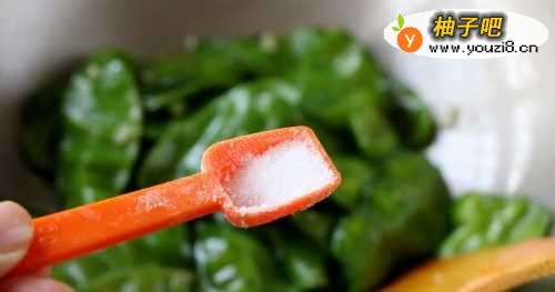 扁豆去掉经络,锅内放适量盐、色拉油,焯水一遍;