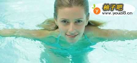 游泳池中的水中含有氯元素。会和汗水生成氯胺,这种物质会损导致头发发黄、干枯、发硬。
